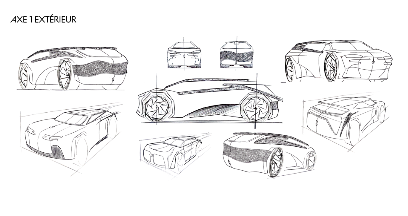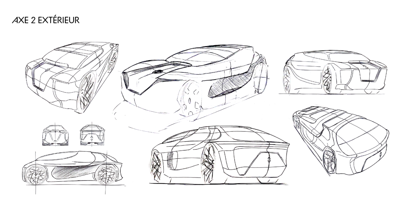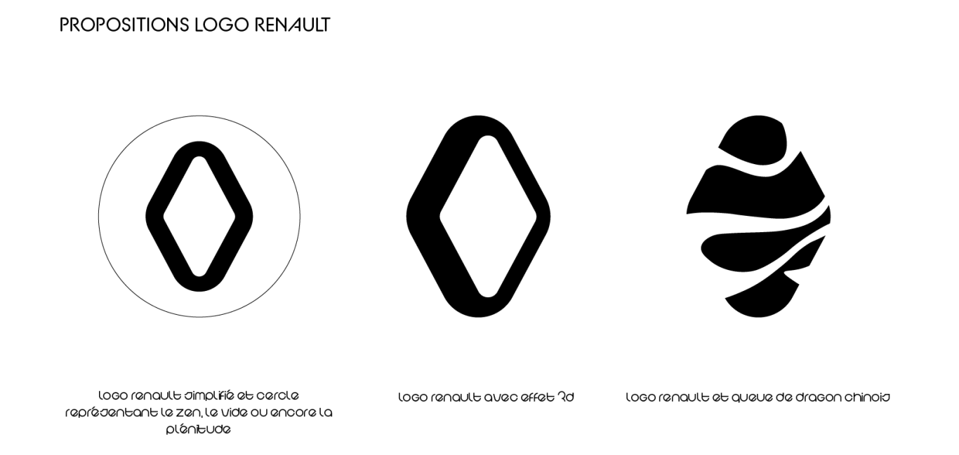 Ici, l'idée était à la fois de modifier quelque peut le logo Renault pour cette nouvelle implantation tout en imaginant un nom et un logo propre au concept car.