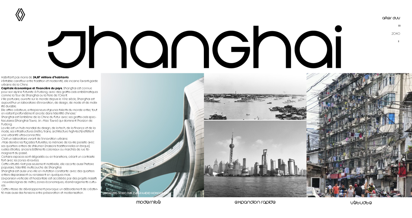 J’ai choisi de me baser sur le continent asiatique, et plus particulièrement sur la Chine et la ville de Shanghai, en raison de la place centrale qu’occupe aujourd’hui le pays dans l’industrie automobile mondiale.