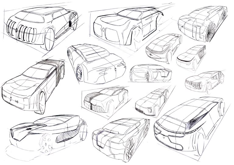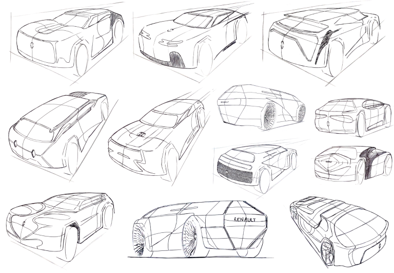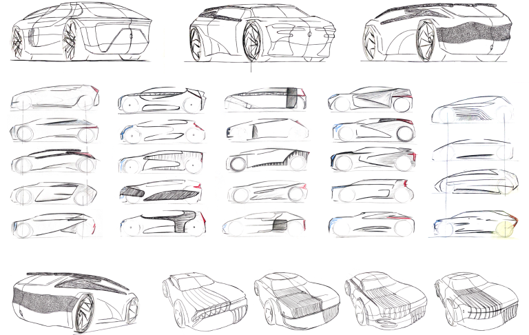 J'ai commencé mon processus créatif en dessinant des côtés et des avants sur