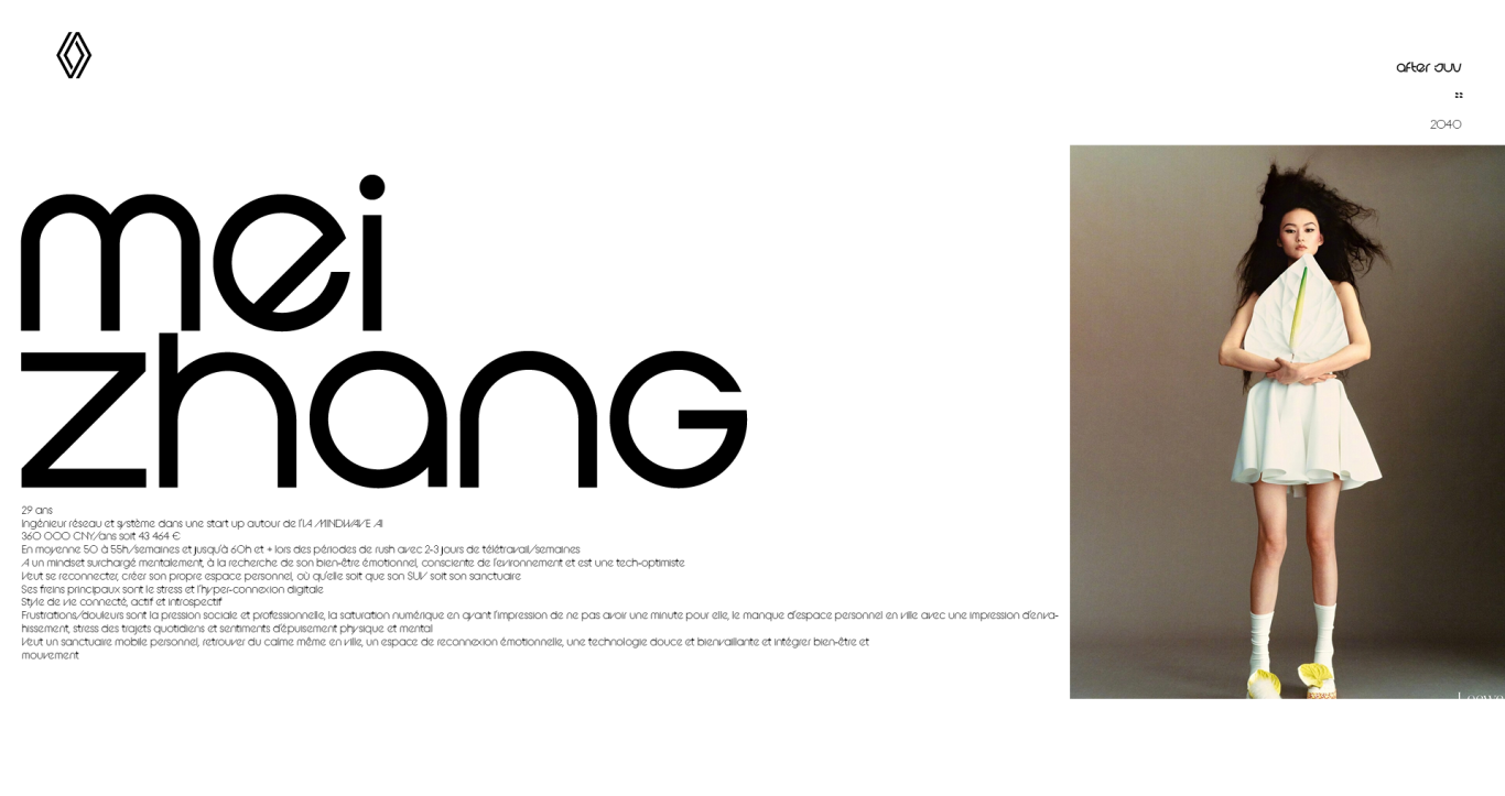 À partir de cette cible, j’ai développé un persona type, Mei Zhang, qui m’a permis de construire mon brief et d’affiner ma problématique de projet.