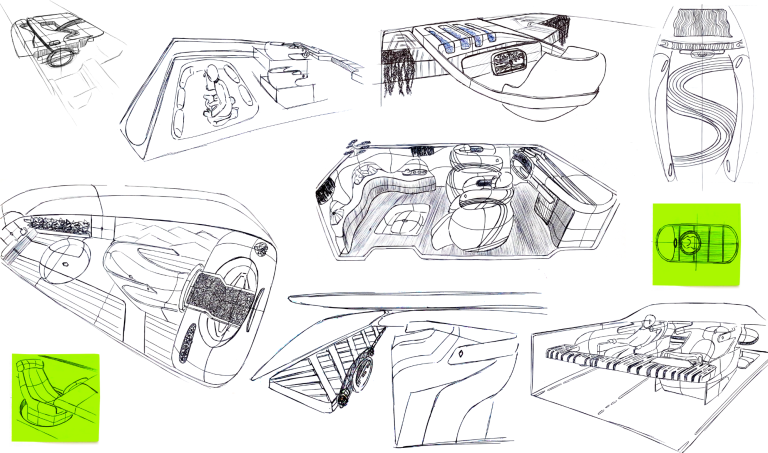 L'idée était soit de faire un intérieur bi-place ou encore un partie pris plus fort avec un intérieur seulement pour le conducteur.