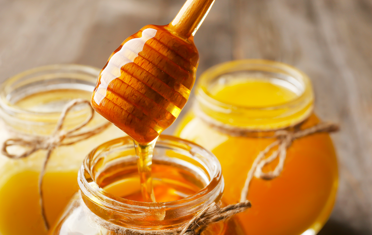 Les ruches d'où découle le miel, avec le miel de lavande de Provence.