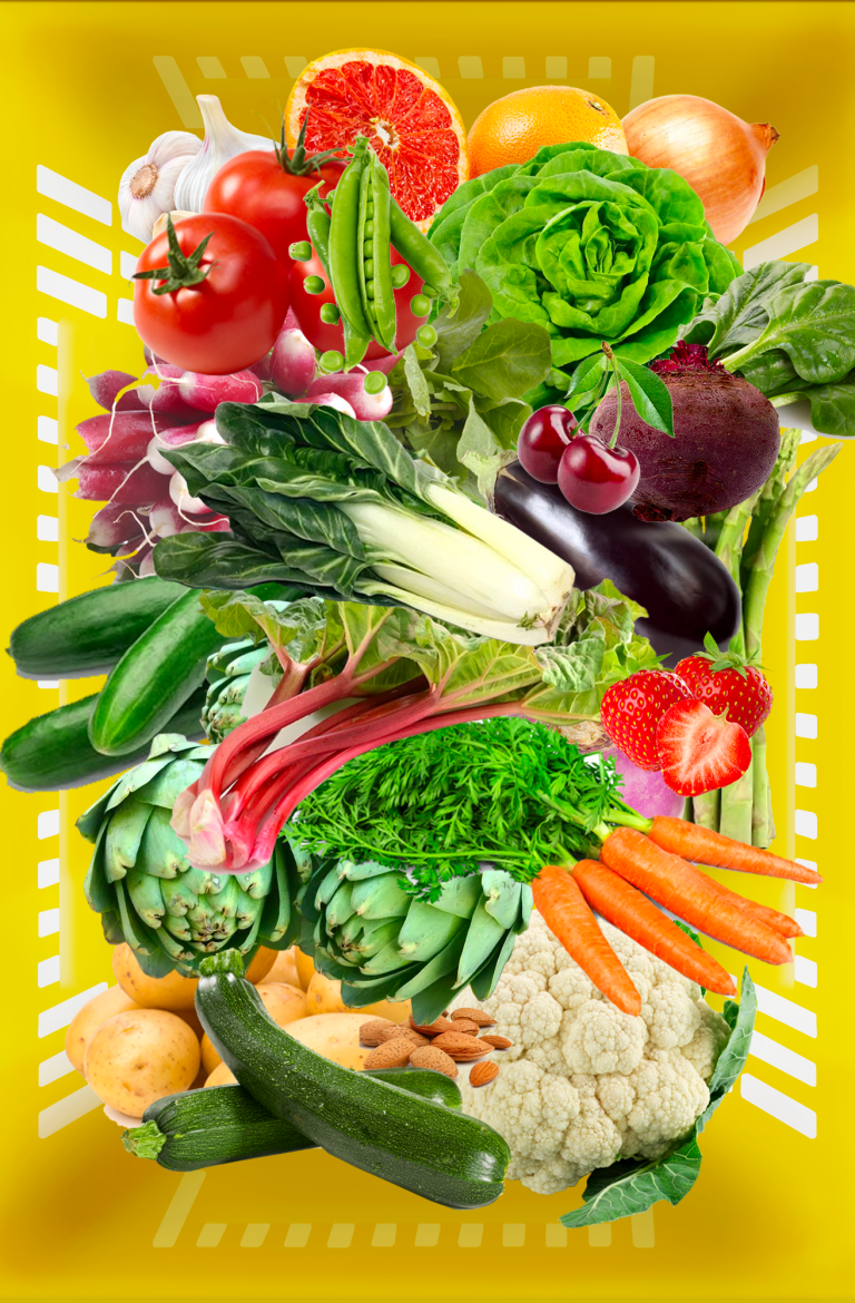 Les notions de producteurs locaux et de circuits courts sont représentés ici par des légumes de saison selon la périodicité du Festival soit Mai.
