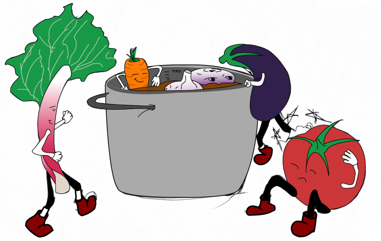 Comme les "coulisses du goût", ici les légumes sont humanisés et mis en scène comme si ils allaient volontairement se "faire" cuisiner.