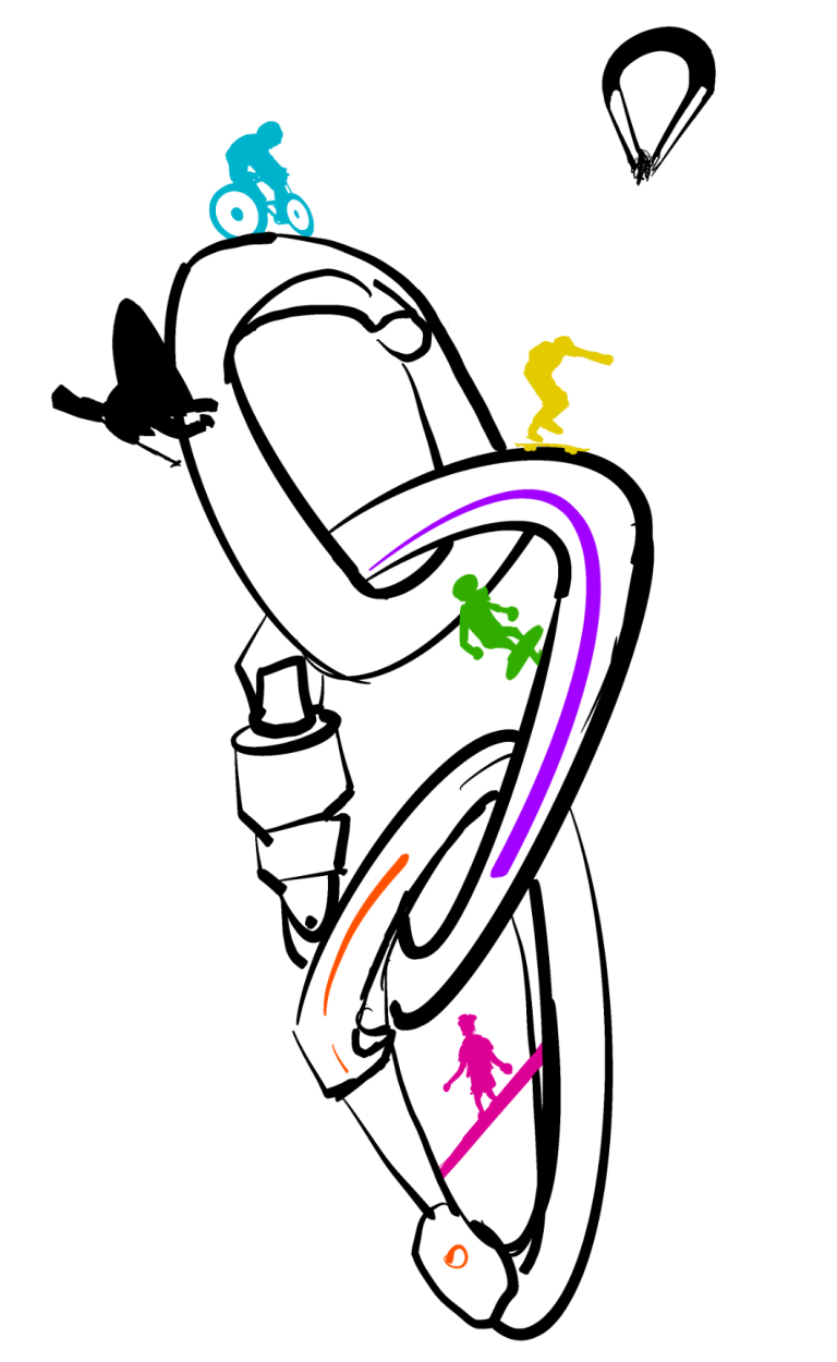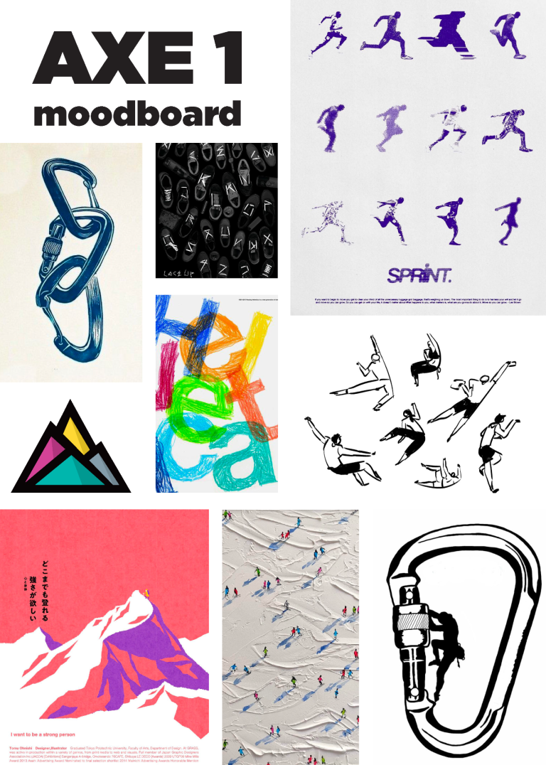 C'est en alliant une illustration vu dans mon moodboard et le succès de la dernière édition que j'ai choisis de représenter un mousqueton sur lequel plusieurs autres disciplines s'exercent.
