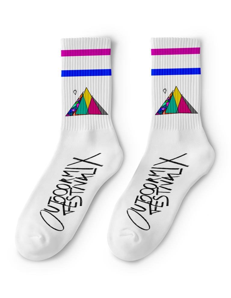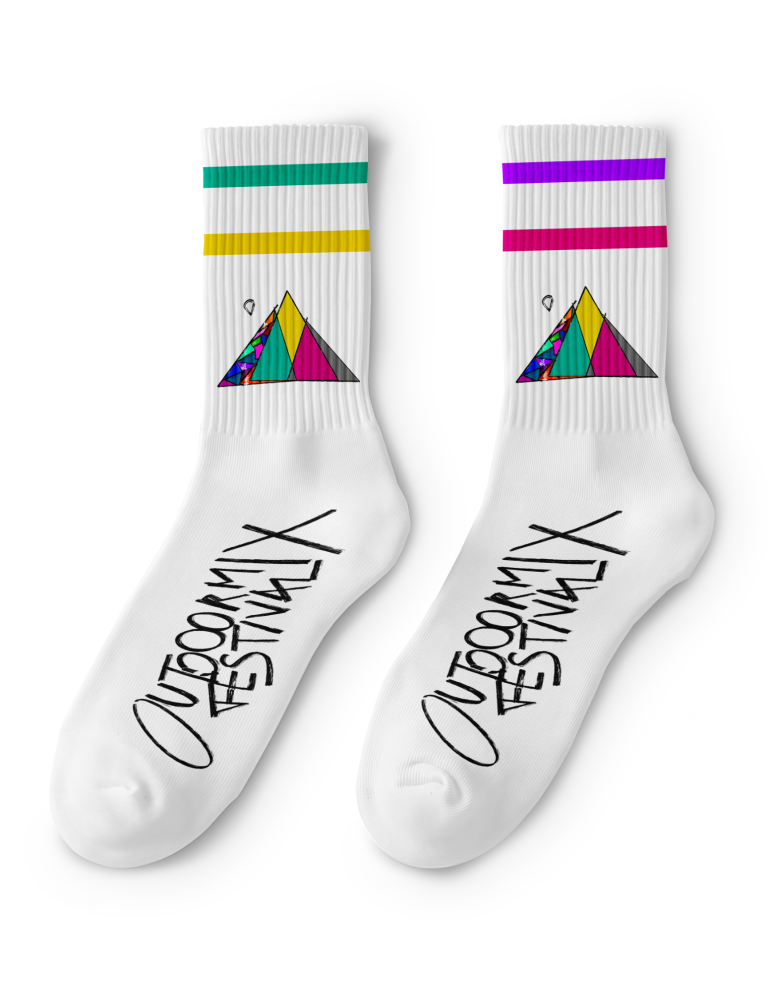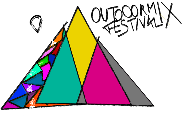 OutdoorMix Festival nous a contacté et mis en place avec notre professeur un appel d'offre demandant à chaque étudiant de créer et de proposer un design décliné sur trois produits : un t-shirt (design principal dans le dos + petit design/logo), un mug, une paire de chaussettes.