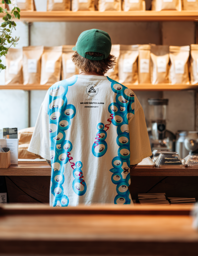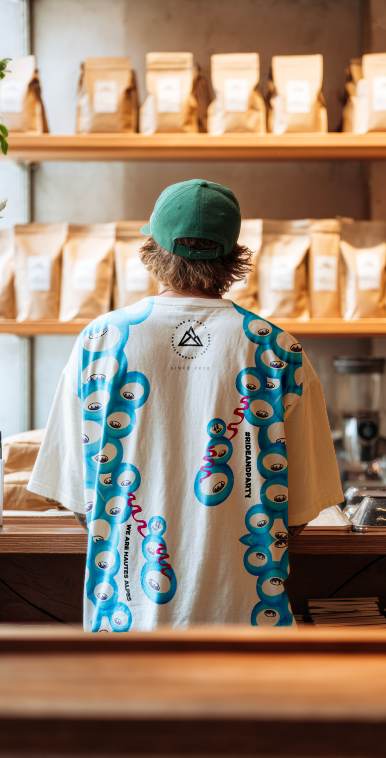 et intégrés dans les designs : «Ride & Party», «Party with the elements», & «We Are Hautes Alpes» (we are hautes alpes est le nom de l’association organisatrice